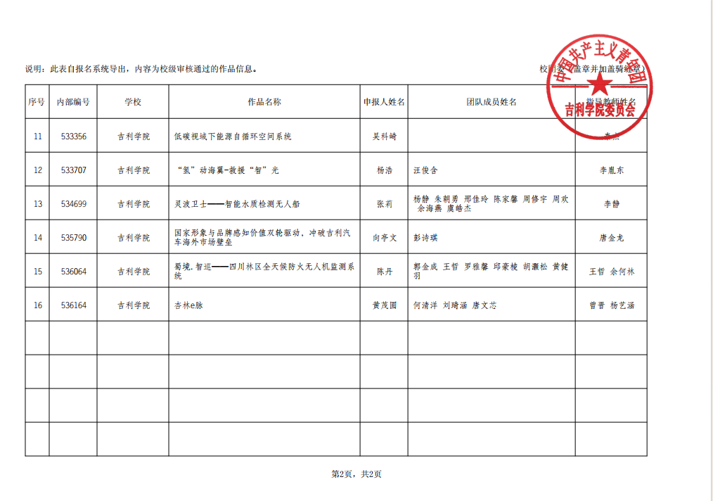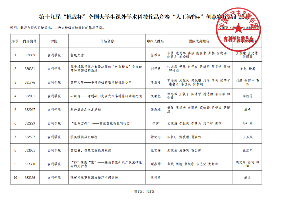 根据《“挑战杯”全国大学生课外学术科技作品竞赛“人工智能+”专项赛方案》《关于开展第十九届“挑战杯”全国大学生课外学术科技作品竞赛“人工智能+”专项赛作品推报的工作提示》通知要求,经各参赛队伍申报、校团委形式审查和评审研究等程序,拟推荐易希亚《智甄文脉》等16项作品参加“人工智能+”创意赛赛道。现予以公示: